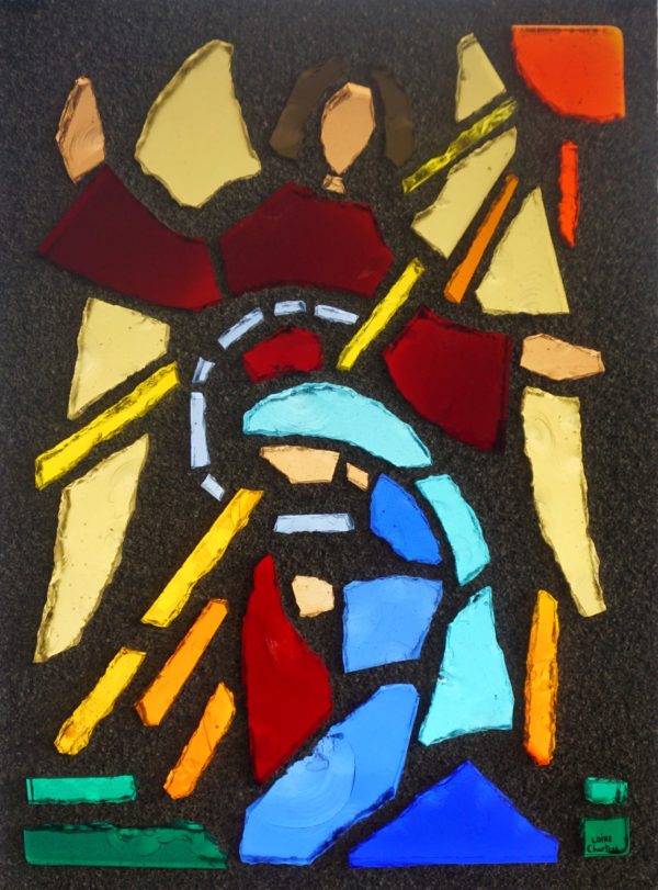 • Technique : Dalles de verre de couleur taillées et serties de résine époxy noire et de poudre de marbre