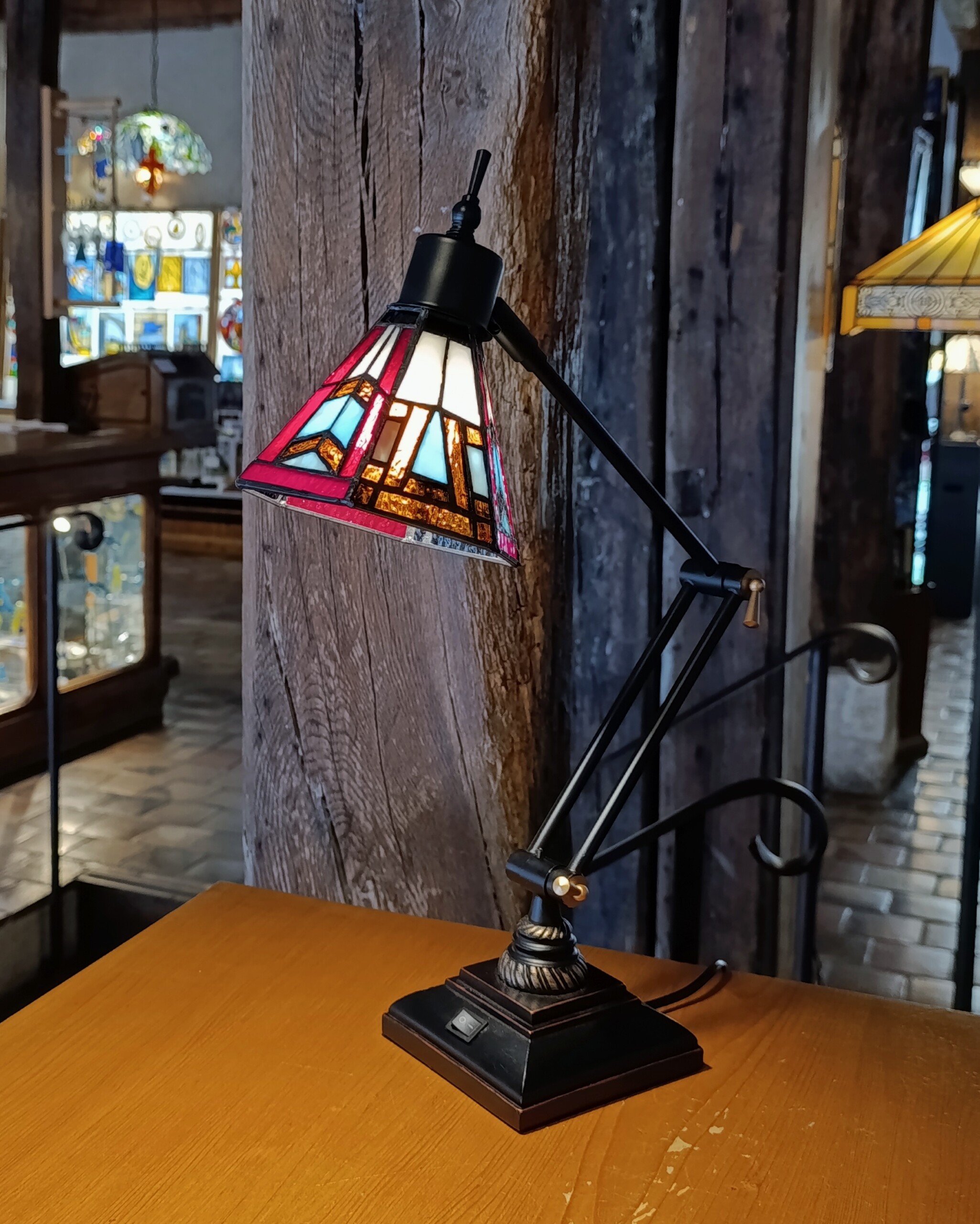 Lampe de bureau style Tiffany, design type Art Déco, ton rouge flamboyant .